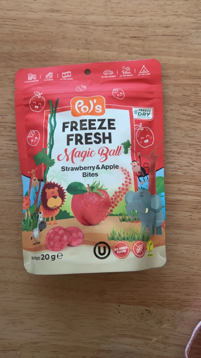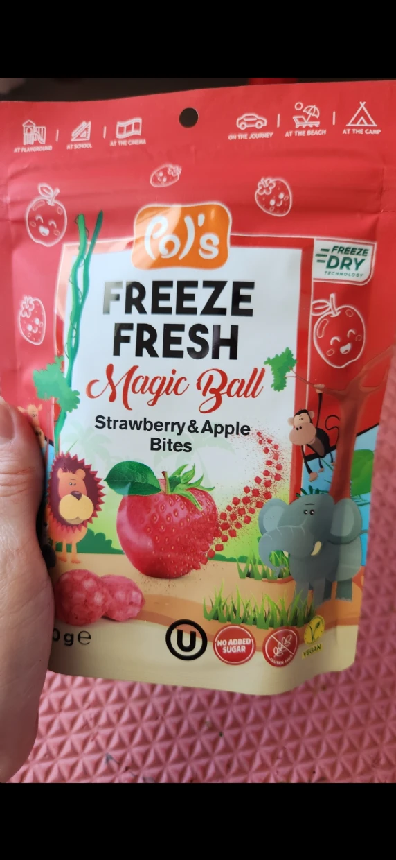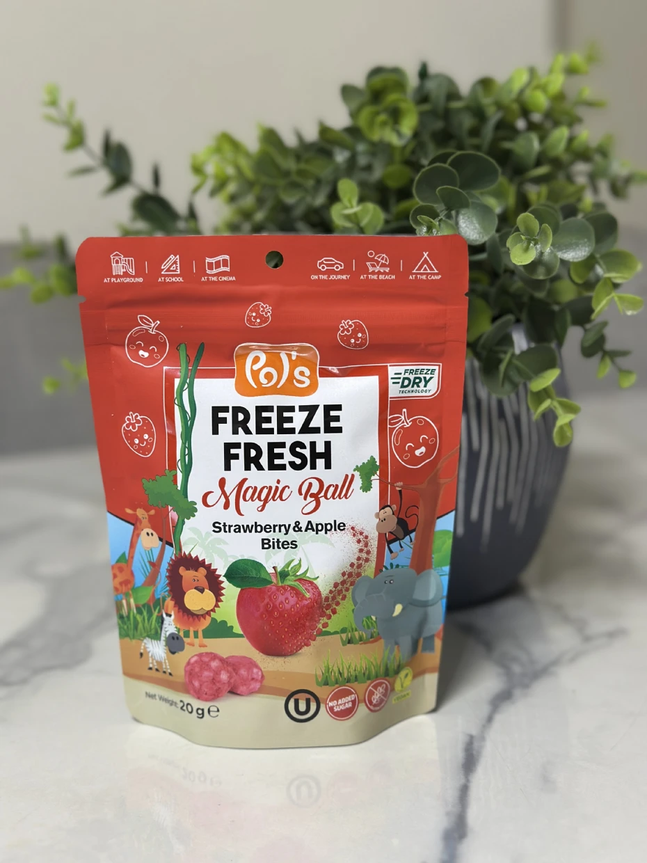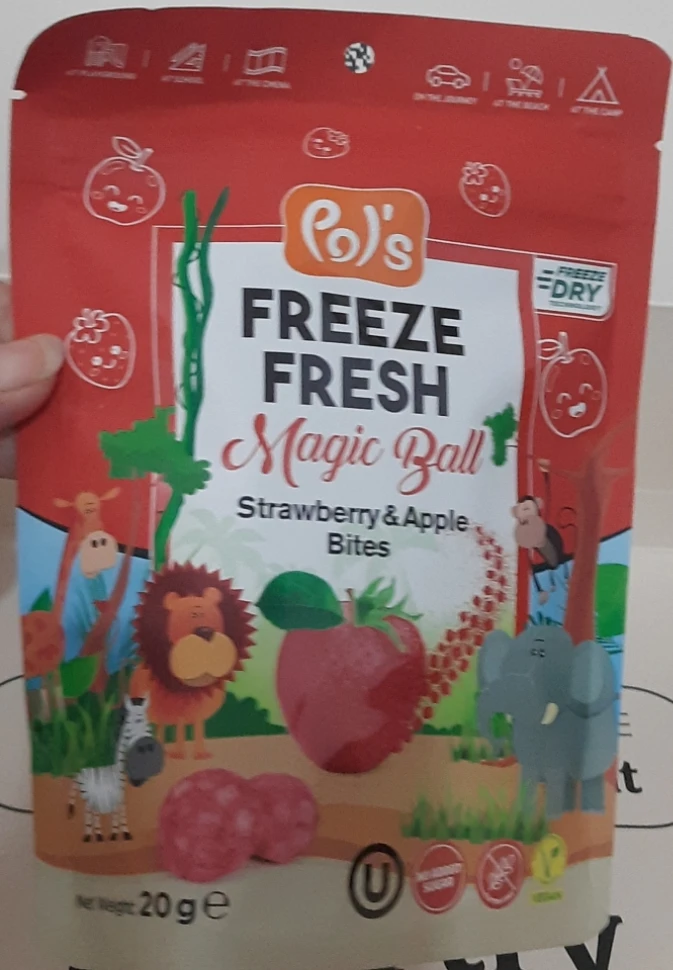 Pols Freeze Fresh Magic Ball Freeze-Dried Strawberry & Apple Bites are a game-changer! The bite-sized balls are so convenient and fun to eat. The combination of sweet strawberries and crunchy apples is amazing. My kids love them as a healthy snack, and I appreciate that theyre made from 100% fruit and are free from added sugars and preservatives. Well definitely be buying more!