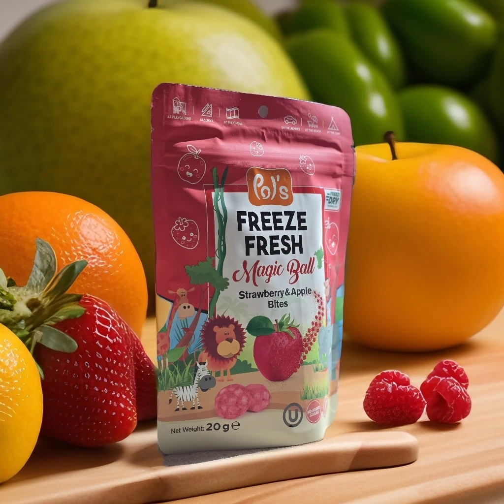 Pol’s Freeze Fresh Magic Ball is an amazing snack! The mix of freeze-dried strawberries and apple bites strikes the ideal balance between sweet and crunchy. I appreciate that it’s made from 100% real fruit with no added sugars or preservatives. It’s a wholesome, guilt-free snack that’s perfect for anytime, anywhere. I highly recommend it for both kids and adults looking for a delicious, healthy treat!