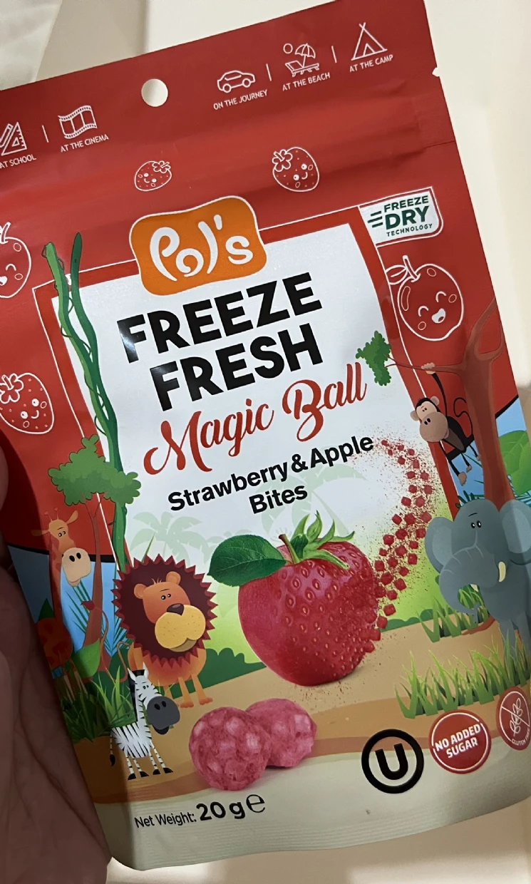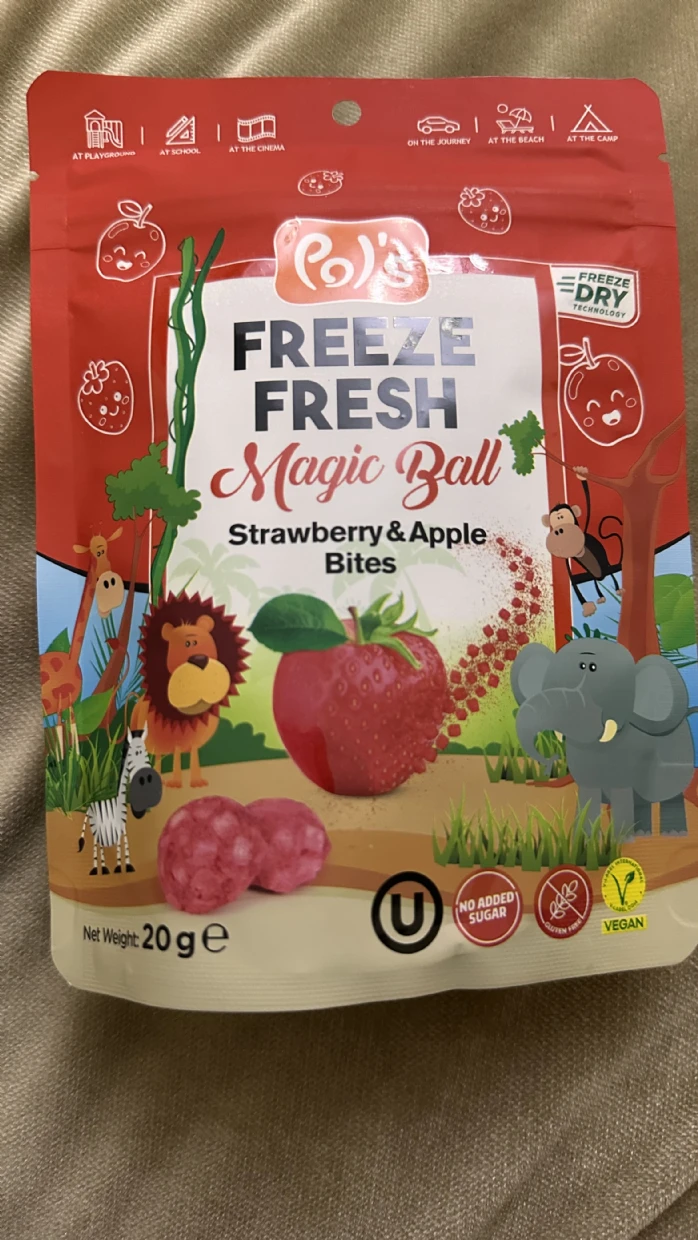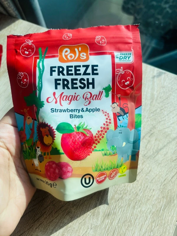Pol’s Freeze Fresh Magic Ball is such a unique and tasty snack! The combination of freeze-dried strawberries and apple bites creates the perfect balance of sweetness and crunch. I love that it’s made with 100% real fruit and contains no added sugar or preservatives. It’s a guilt-free treat that’s perfect for snacking anytime, anywhere. Highly recommend for both kids and adults!