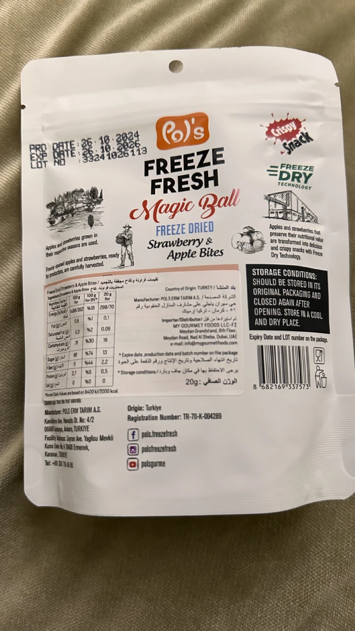 @PolsArabia fresh magic balls are a delicious, healthy snack packed with flavor. They have the perfect balance of sweetness and tartness, making them a satisfying treat. The quality is top-notch, and they’re great for on-the-go munching or adding to cereals and desserts. Highly recommend for fruit lovers!