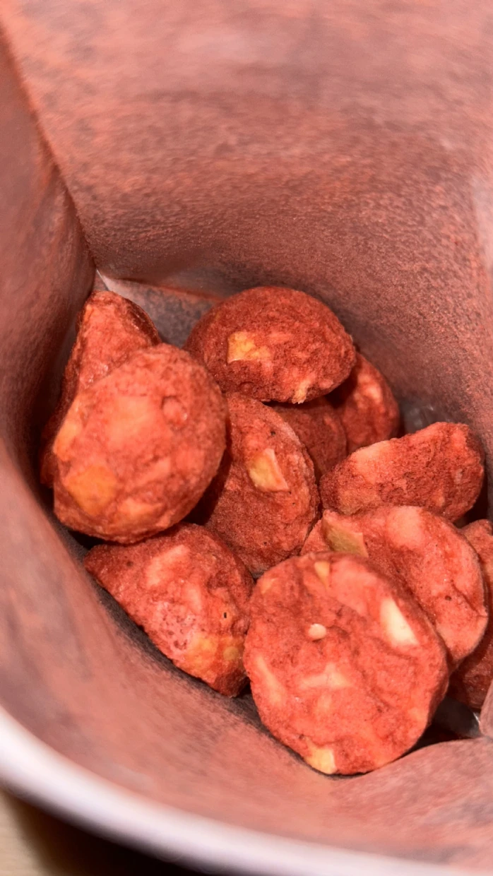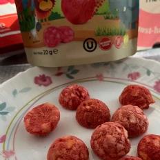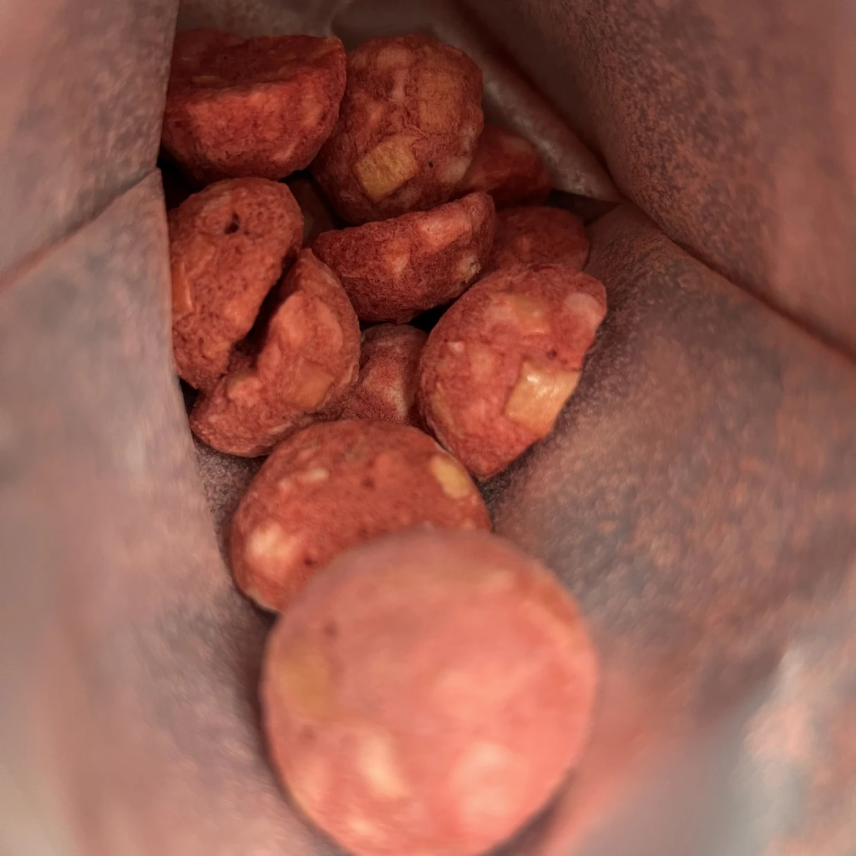 I tried Pols Freeze Fresh Magic Ball Freeze-Dried Strawberry & Apple Bites, and theyre a fun snack! The combo of strawberry and apple gives a nice balance of sweetness and tartness. Theyre crunchy and light, perfect for snacking or tossing into a lunchbox. It’s a nice mix of flavors, but I wish there were a little more apple in the mix. Still, pretty tasty!