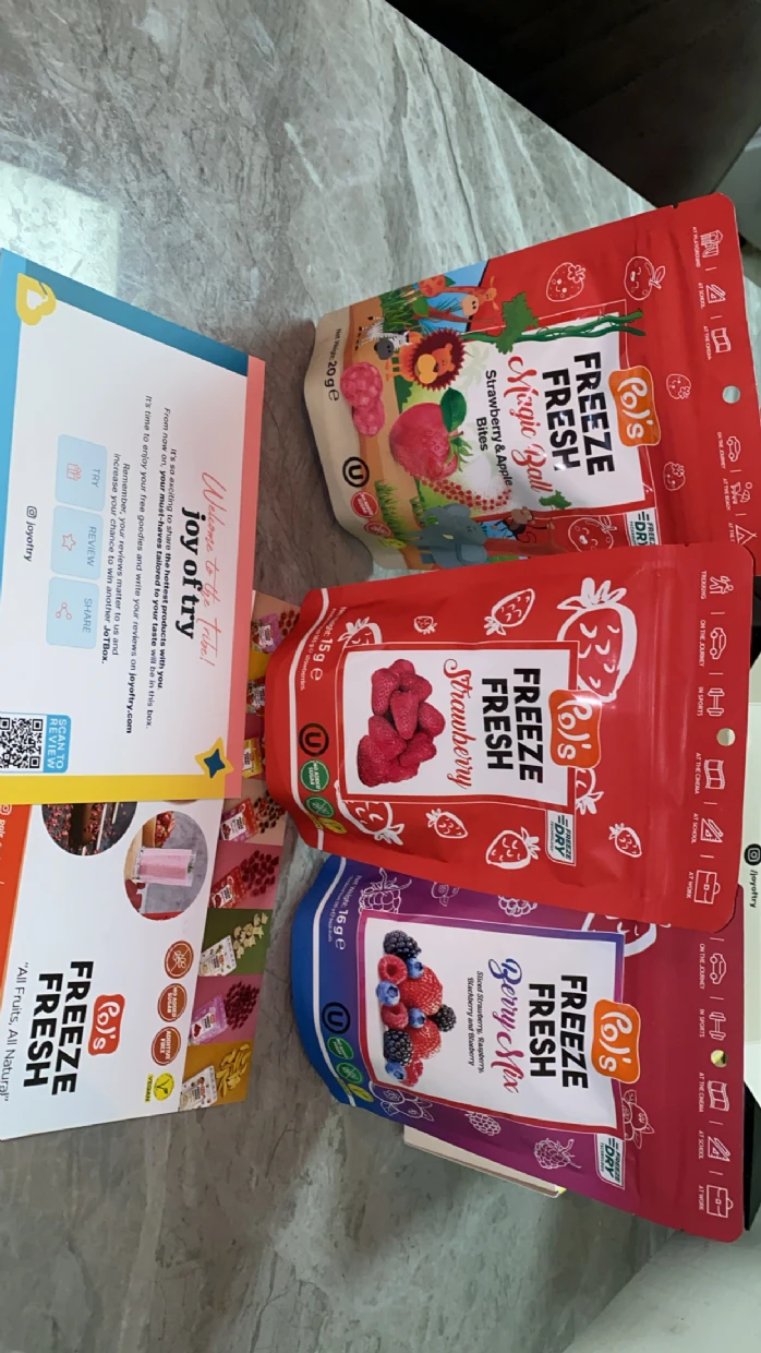 My niece and I love Pols Freeze Fresh Magic Ball Freeze-Dried Strawberry & Apple Bites. I put it on my pancakes or yogurt in the morning for added taste and benefits, and I love it. Its amazing!