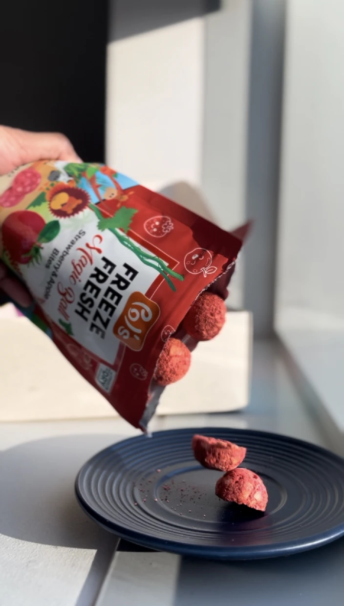 The texture is super light and crispy, almost like a puffed-up version of the fruit, which made it fun to snack on. The flavor is really concentrated almost like eating a fresh strawberry and apples but with an extra punch of sweetness. I loved that it didn’t have any added sugars or preservatives, making it a clean, all-natural option. My son loved it!