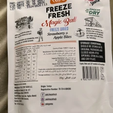 A delightful and healthy snack, Pols Freeze Fresh Magic Ball combines the sweet-tart taste of strawberries with the crisp sweetness of apples. The freeze-drying process keeps the flavors fresh and natural, with no added sugar or preservatives. The texture is light and crunchy, making it a fun and satisfying treat. Perfect for snacking, adding to yogurt, or even blending into smoothies. A great choice for anyone looking for a guilt-free, fruity snack!
