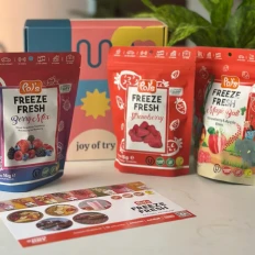 Really like the product. My kid finished it all and had it like candies. He said muma it tastes like candies as he didnt know he was eating somethjng super healthy
