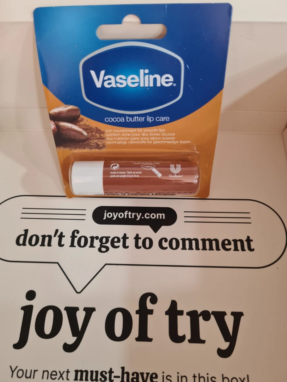 I used this product since before and I’m about to buy new one but when I open the box of joy of try I’m so happy i saw this inside. This is the only product i used since my lips always dry. Highly recommended.