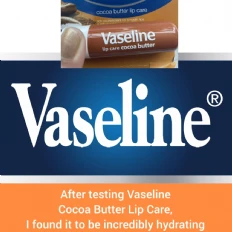 Iam actually using vaseline as my lip care, the rosy lip flavor. This does a great job moisturizing and protecting my lips. However, while it performs well, the cocoa butter flavor isn’t to my taste. If you like cocoa butter, you’ll find this effective for you.